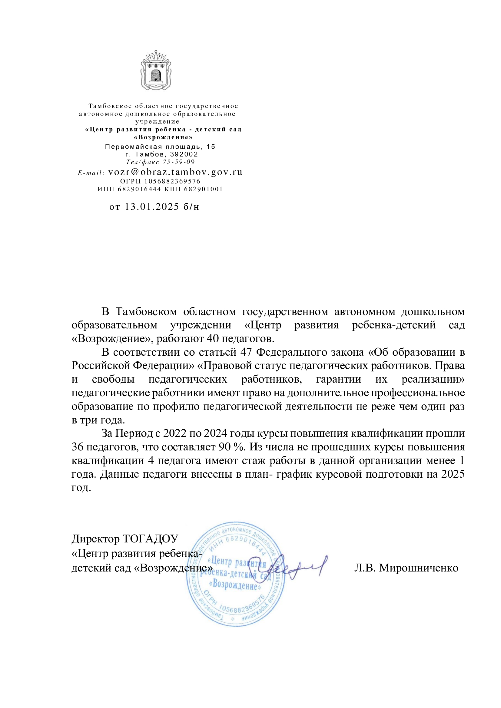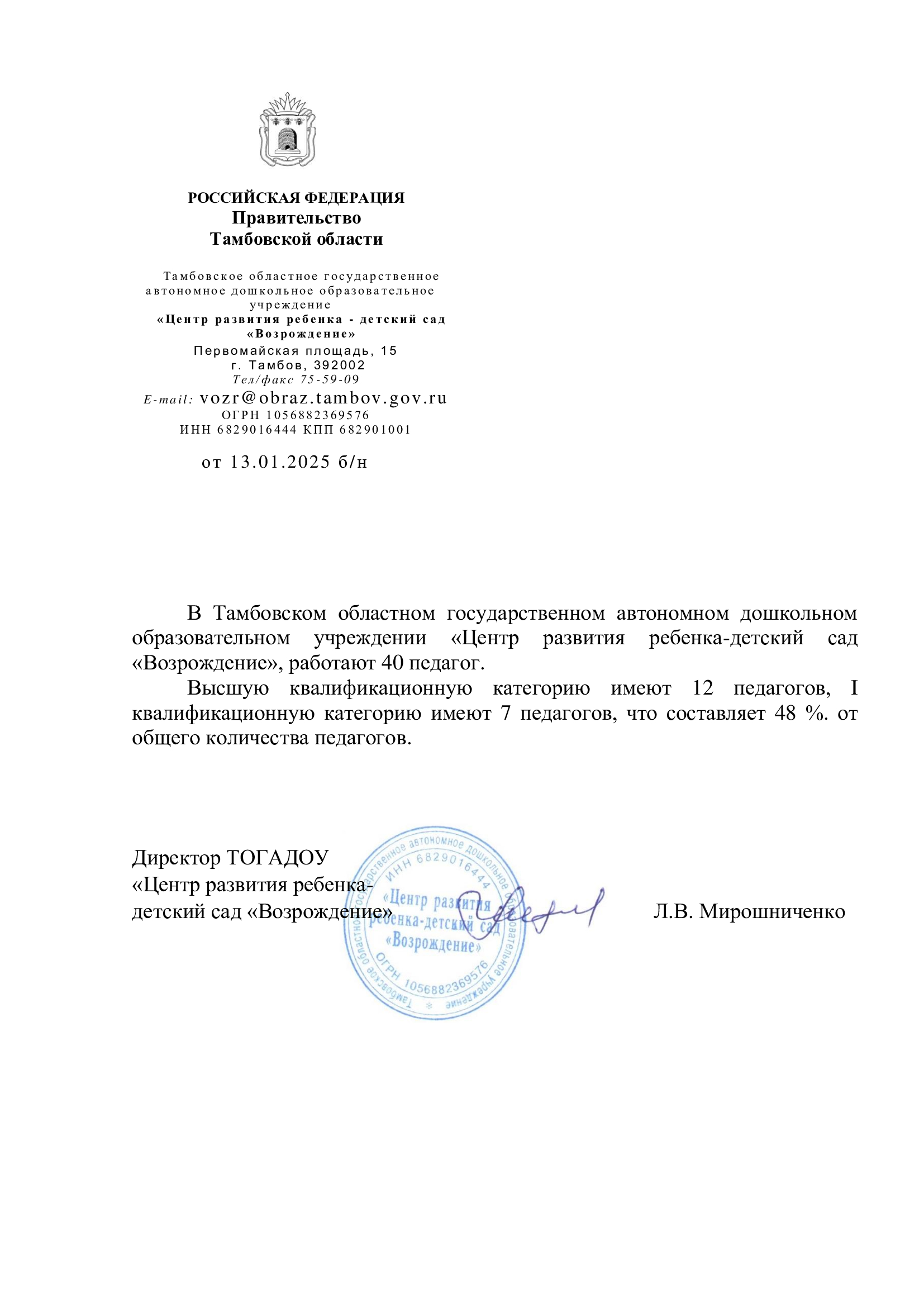 Благодарность педагогическому коллективу ТОГАДОУ "Центр развития ребенка-детский сад "Возрождение"